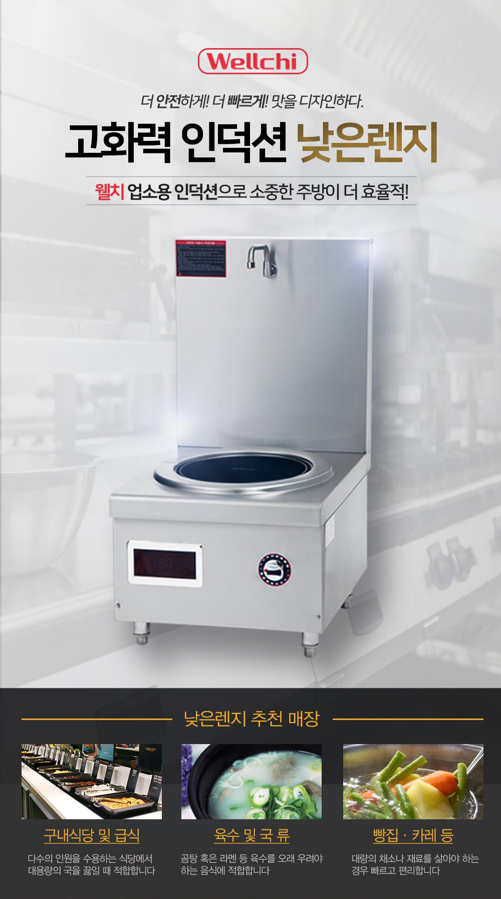 ✔ 대량의 국끓임과 데핌 등에 적합